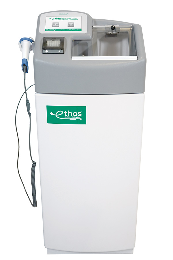 Ethos Automated Ultrasound Probe Cleaner Disinfector is the first product of its kind to be cleared by the US FDA. Ethos provides both manufacturers recommended cleaning and high-level disinfection of soiled transvaginal, transrectal, and surface ultrasound probes in the same device. Ethos is approved for use with Philips, Samsung, and Siemens ultrasound probes.