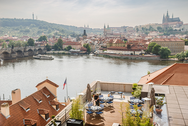 I’m told to arrive at the rooftop at 6:00 p.m. sharp. Maria and Jaroslav will be attending to me for the evening. Oshiburi, a warm towel infused with lemongrass, is offered to prepare for the meal. A starter of edamame with a sprinkle of red pepper follows. Two sticky rice offerings are served before chutoro tartare, with caviar/wasabi soy and gold leaf. Sea bass usuzukuri, yuzu miso black cod, and wagyu tataki, followed by the nigiri selection of tuna truffle, creamy salmon, and sea-bream yuzu. My favorite dish of the night was the roasted turbot. A lovely palette cleanser: yuzu chantilly, coconut and lime granita with candied ginger; for dessert, jasmine cream, wasabi sponge, and pineapple vanilla compote with sake sorbet. You can enhance the dining experience with mindfully curated beverage pairings. I chose to soak in the incredible scenery as a complement to the meal. I was under the spell of the Prague skyline as the dinner was seamless from sunset until the moon appeared high above the castle spires. It being a four-hour gastronomic affair, I suggest it’s even sweeter when shared with another. Everything about this five-star luxury hotel would be sweeter when shared with another. I hope to return with the one I love.